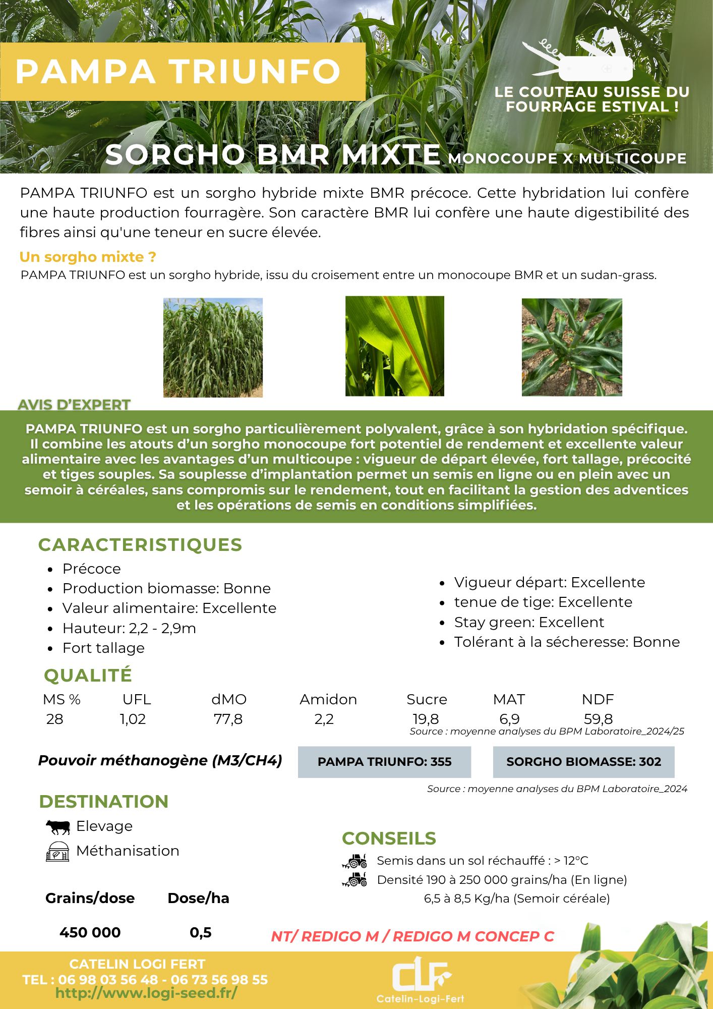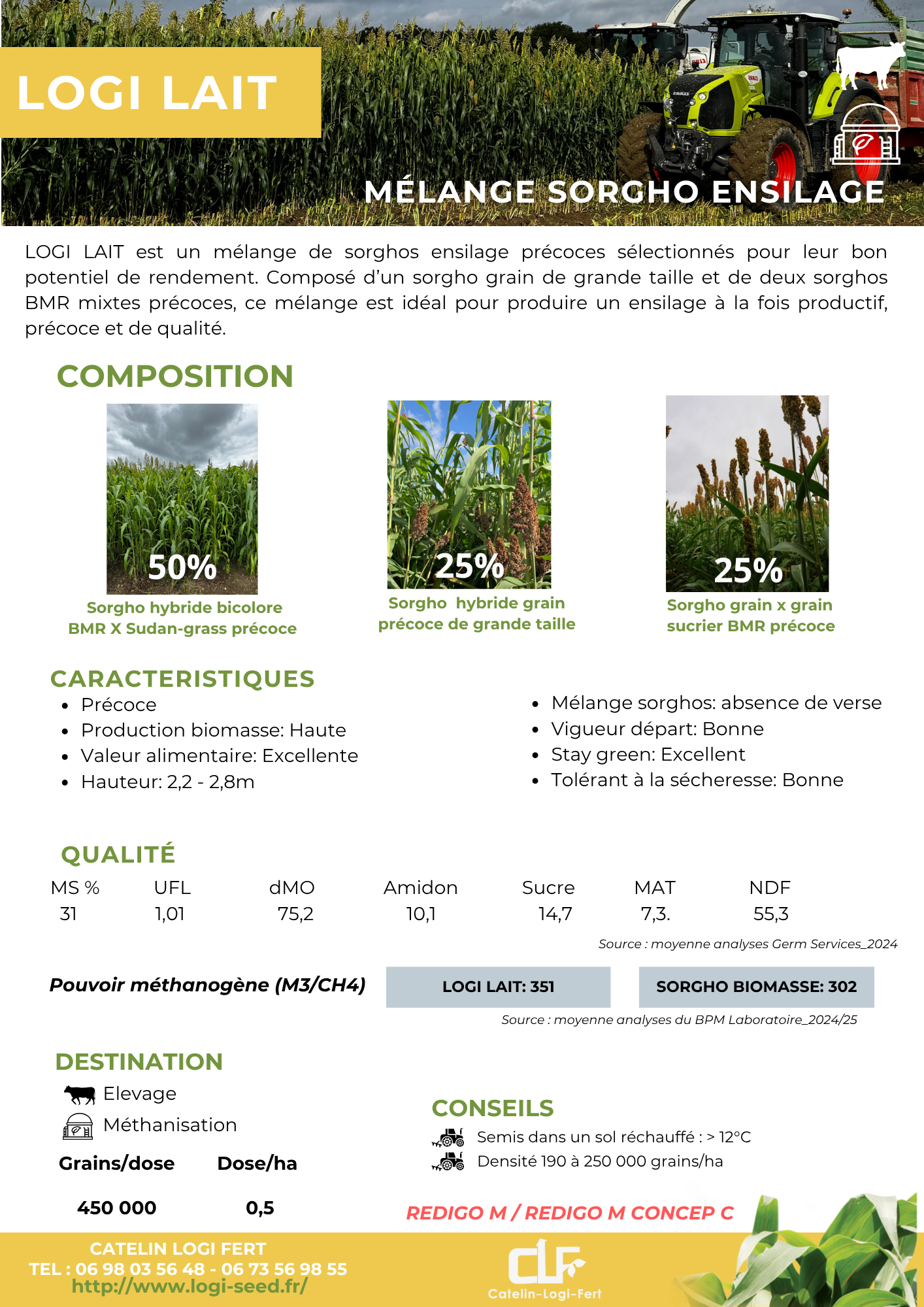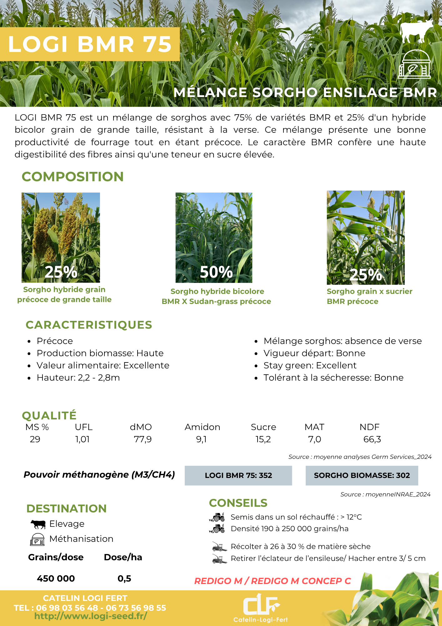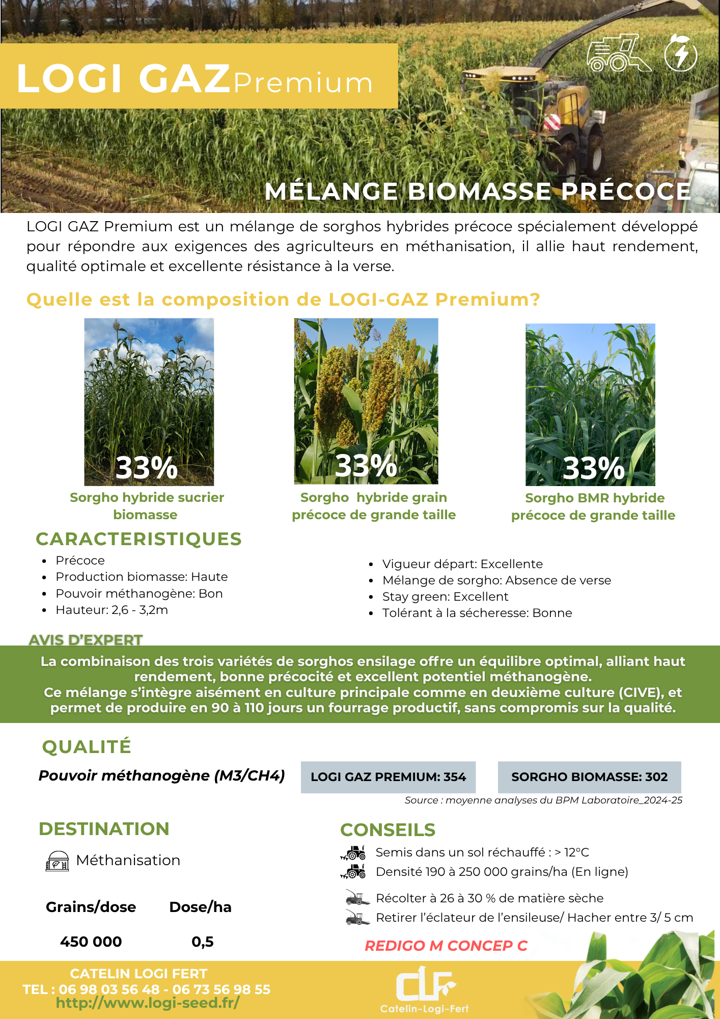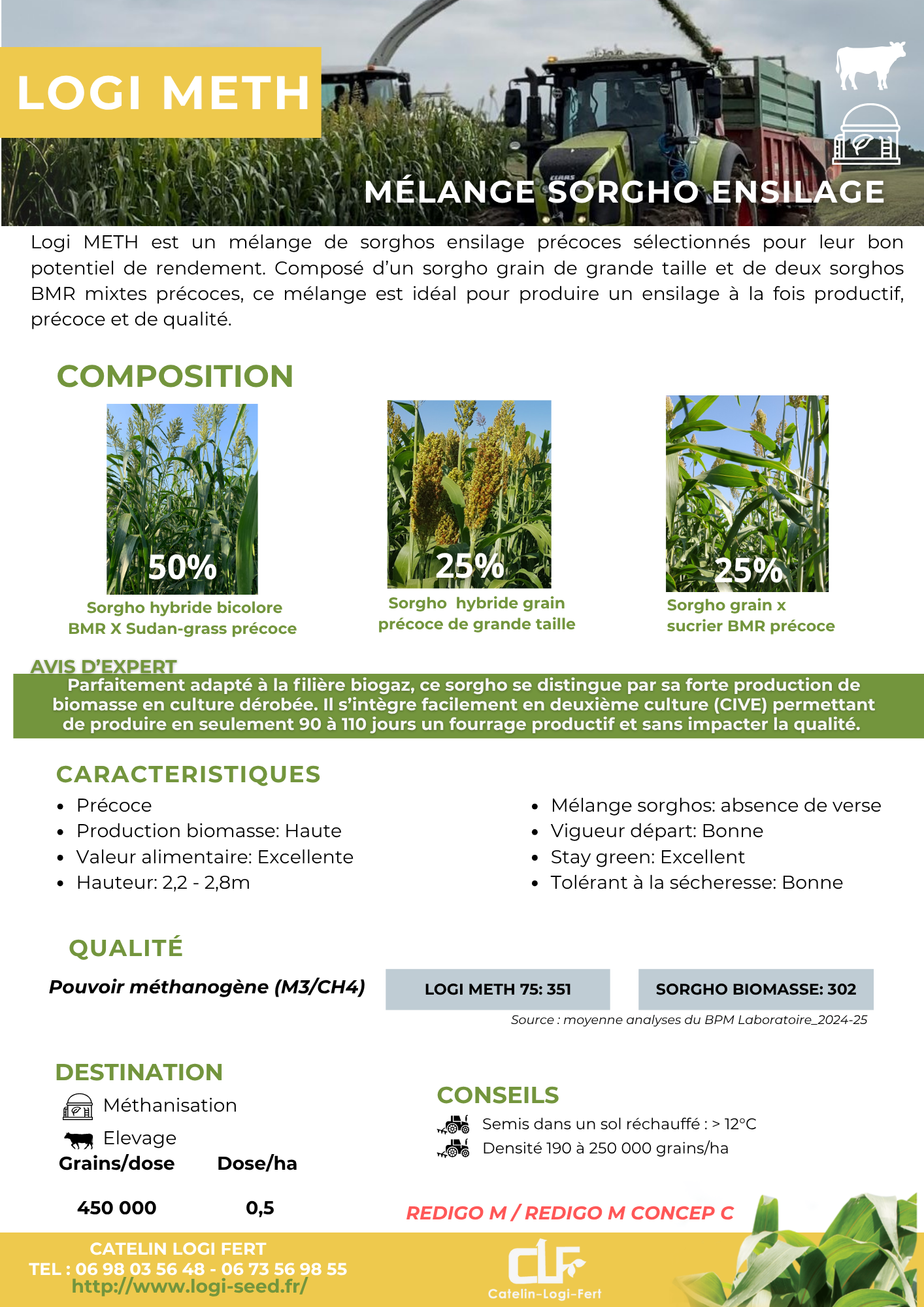 Spécialiste du sorgho fourrager pour l’ensilage et la méthanisation, CATELIN-LOGI-FERT propose des mélanges sur-mesure issus de variétés hybrides reconnues pour leurs performances agronomiques. Nos sorghos sélectionnés offrent un excellent compromis entre rendement, richesse énergétique et sécurité fourragère. Conçus pour répondre aux besoins concrets des éleveurs et des méthaniseurs, nos mélanges allient vigueur de départ, souplesse de récolte, digestibilité et adaptabilité aux conditions climatiques difficiles. Grâce à notre expertise technique et à une génétique de référence, nous accompagnons les producteurs vers des cultures performantes, rentables et durables.
